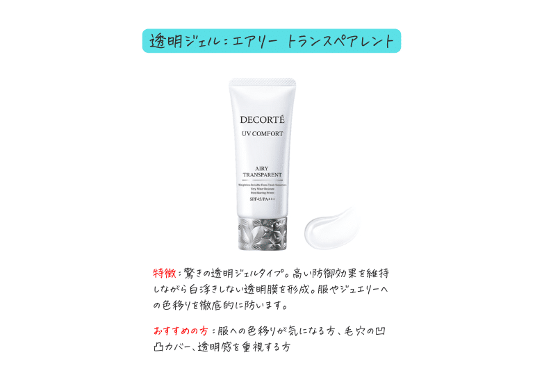 驚きの「透明」ジェル。服に色がつく心配がないから、首やデコルテに最適!
